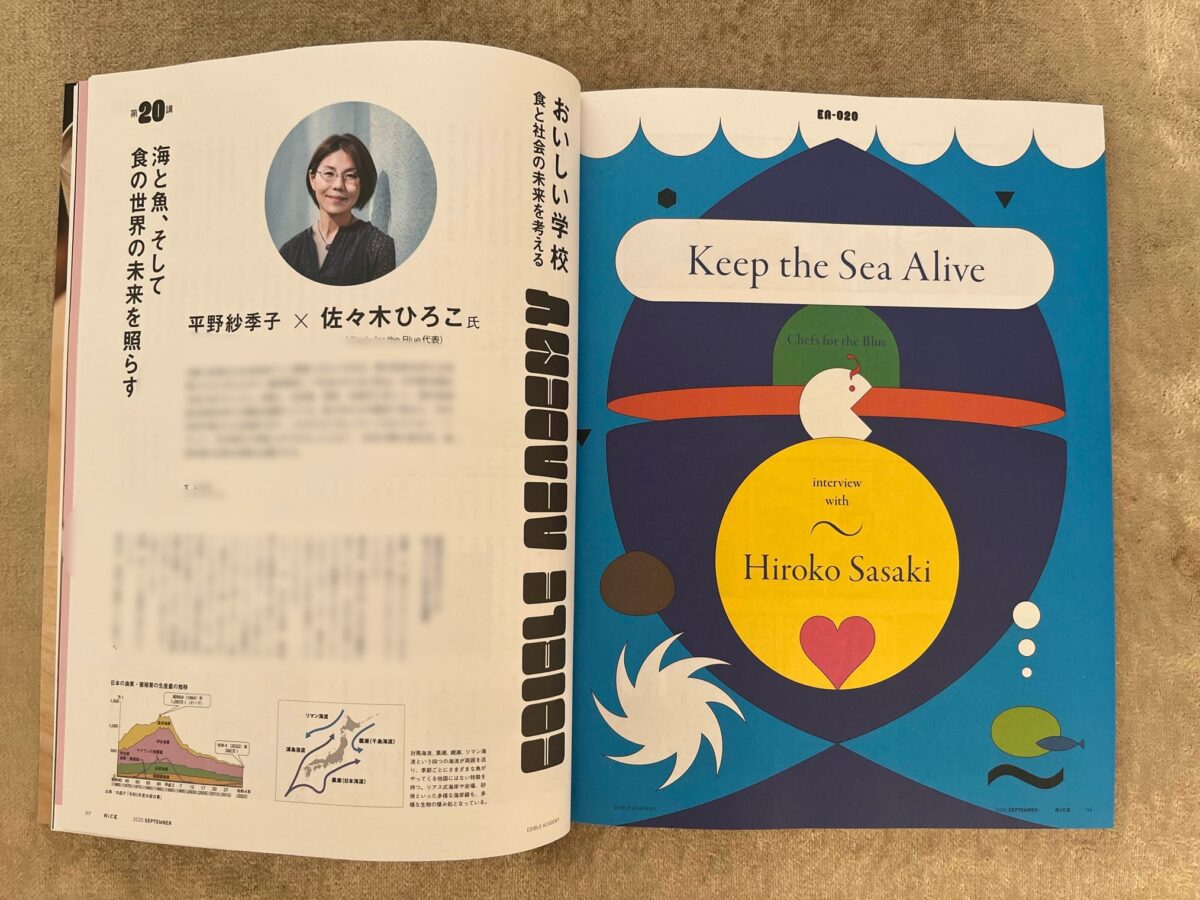 エッセイスト・フードディレクター平野紗季子さんと代表佐々木ひろこの対談が連載記事「おいしい学校食と社会の未来を考える Edible Academy」全5ページにわたって掲載されています。是非お手に取ってご覧ください。
